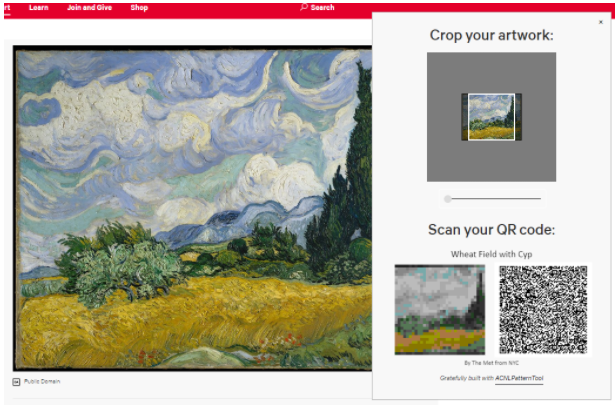 - 메트로폴리탄 미술관은 소유한 작품을 동물의 숲에 가지고 갈 수 있도록 제작하였다. QR코드를 게임기로 인식하여 자신의 섬에 해당 작품을 가져올 수 있는 것이다.