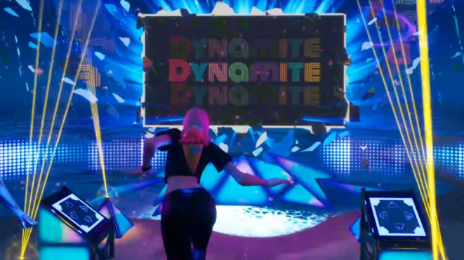 또한 Dynamite 댄스를 포트나이트 캐릭터가 출 수 있도록 제작까지 하였다.
