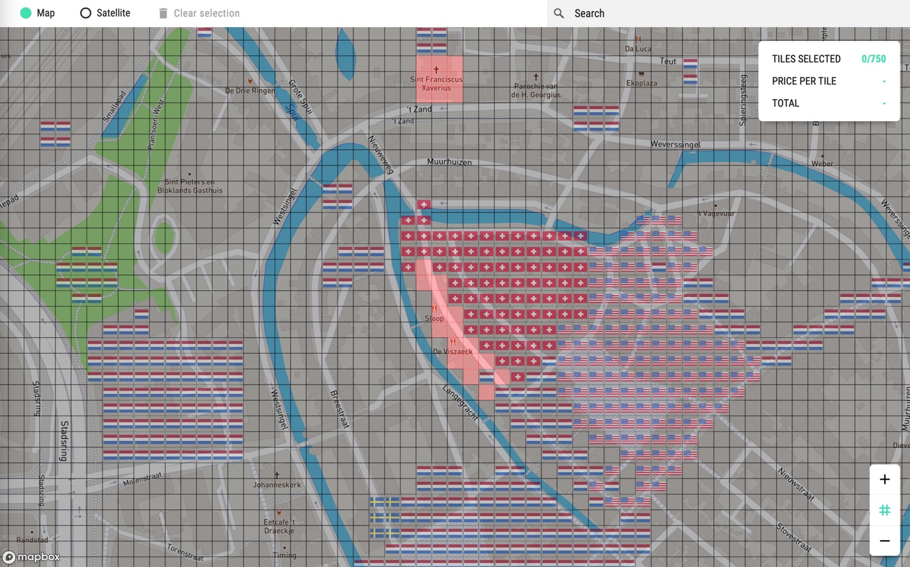 구글의 지도로 하나의 세계를 만들고, 평면도로 타일을 구분하고, 조각 조각 판매를 하고 있다.