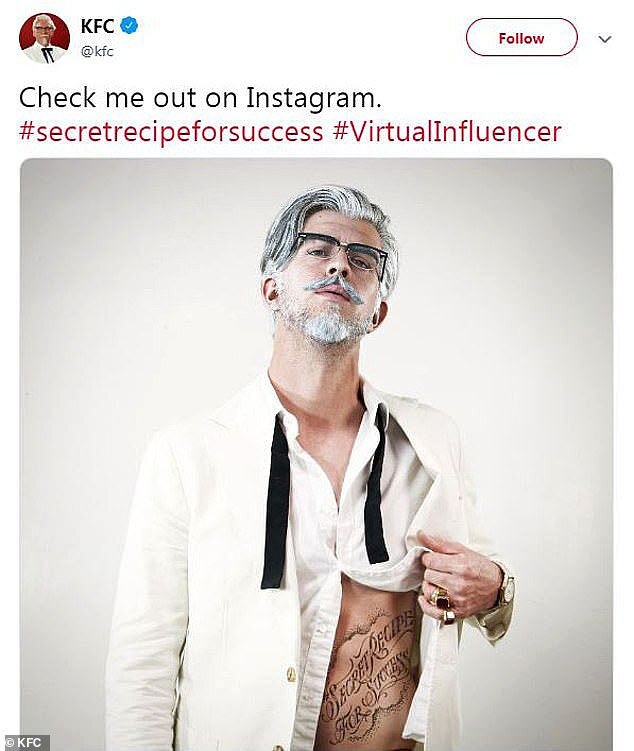 예전의 KFC 켄터키 할아버지 모습을 버추얼 인플루언서로 재창조하였다.
