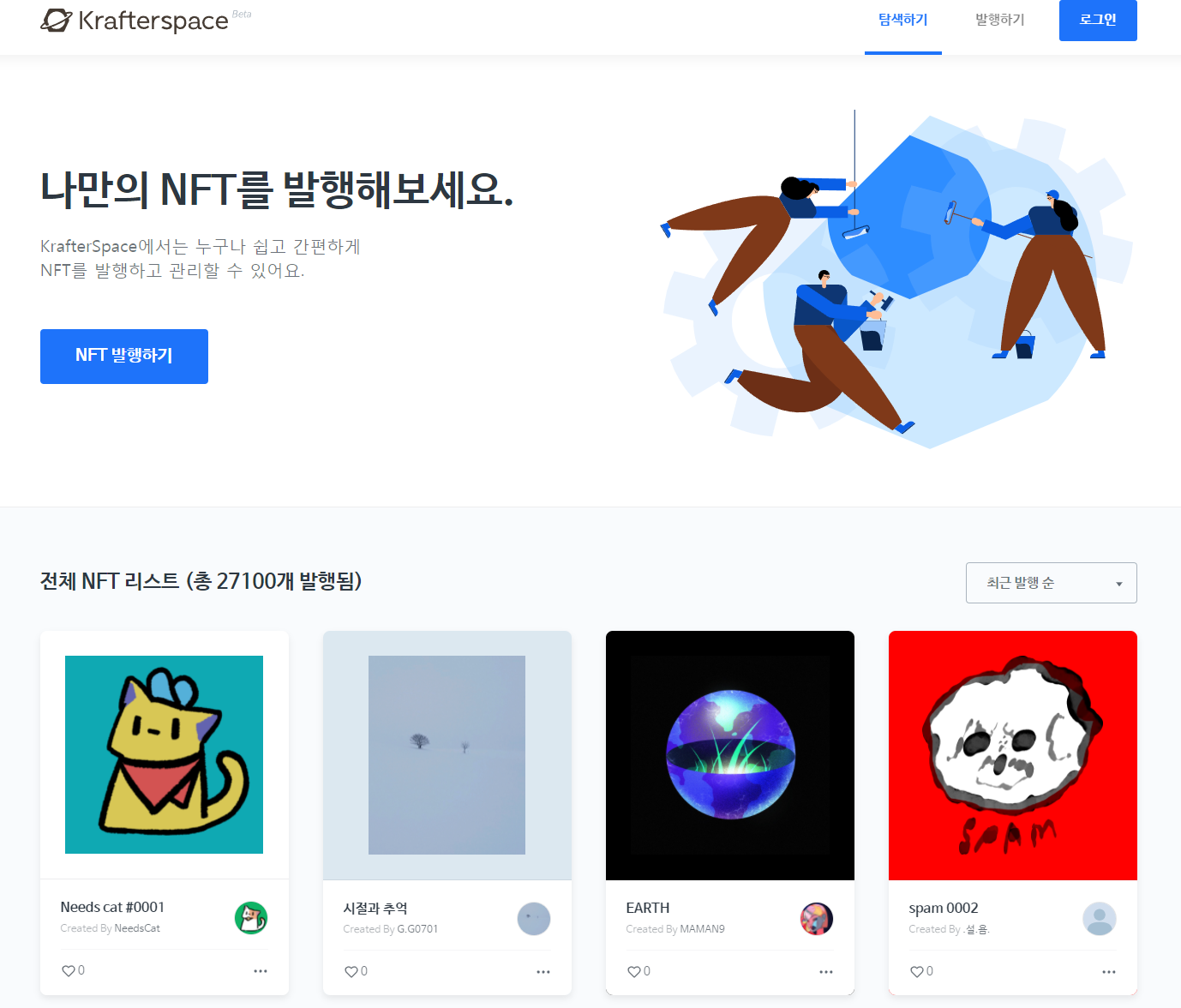 위 사이트는 KrafterSpace 라는 곳이다. 여기서 NFT를 쉽게 만들수도 있다.