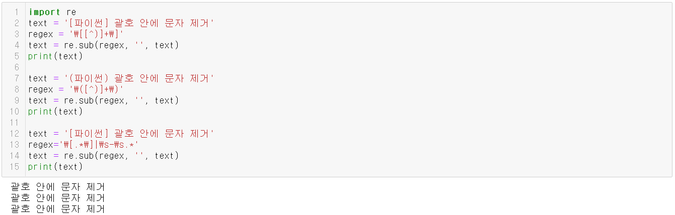 텍스트에서 괄호, 대괄호 내부에 있는 문자를 모두 제거하는 방법이다.