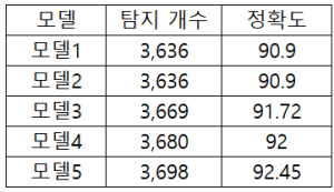 그림 2. 각 모델별 탐지 개수 및 정확도