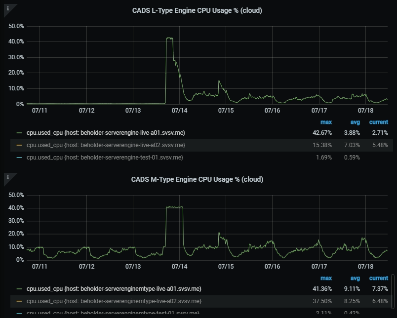 그림 3. 스케쥴 서버 / L-타입, M-타입 엔진 stat 값 결과