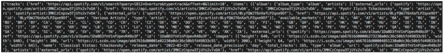 search_result = spot.search(query, limit = 10, offset = 0, type = 'track', market = None)