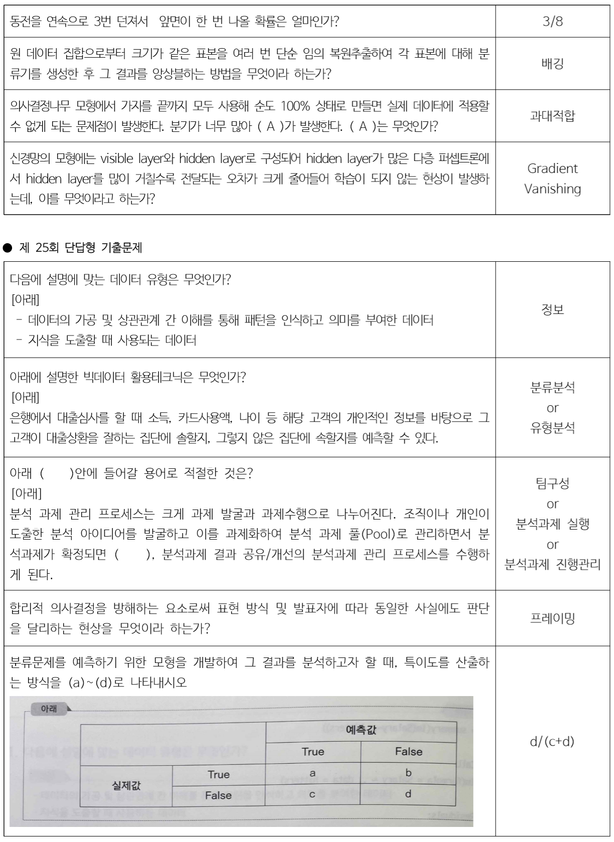 ADsP 제 21회~27회 주관식 기출문제 정리입니다.