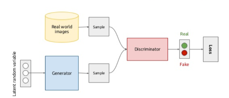 그 다음 Generator를 통해 임의의 이미지를 만들고 이것을 다시 Discriminator를 통해 진짜 이미지인지를 판단하게 한다.