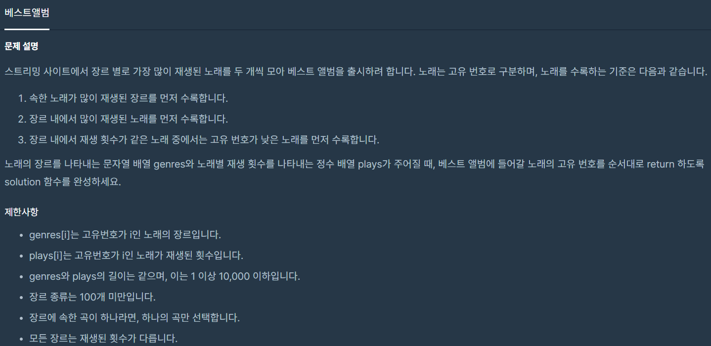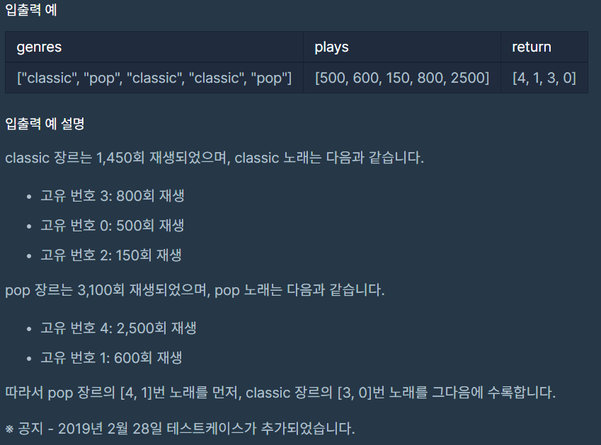 문제 링크: https://programmers.co.kr/learn/courses/30/lessons/42579