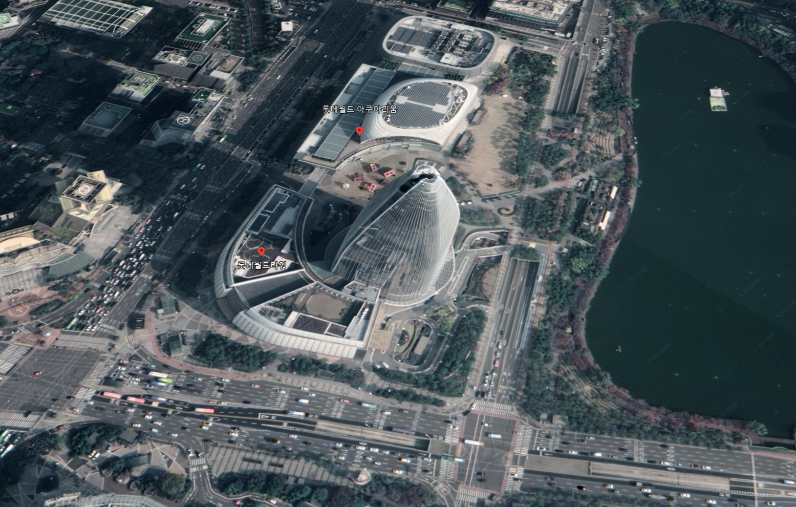 이 지구본은 마우스를 돌리면서 볼 수 있고, 롯데타워를 검색하면 롯데타워의 모습까지 볼 수 있다.